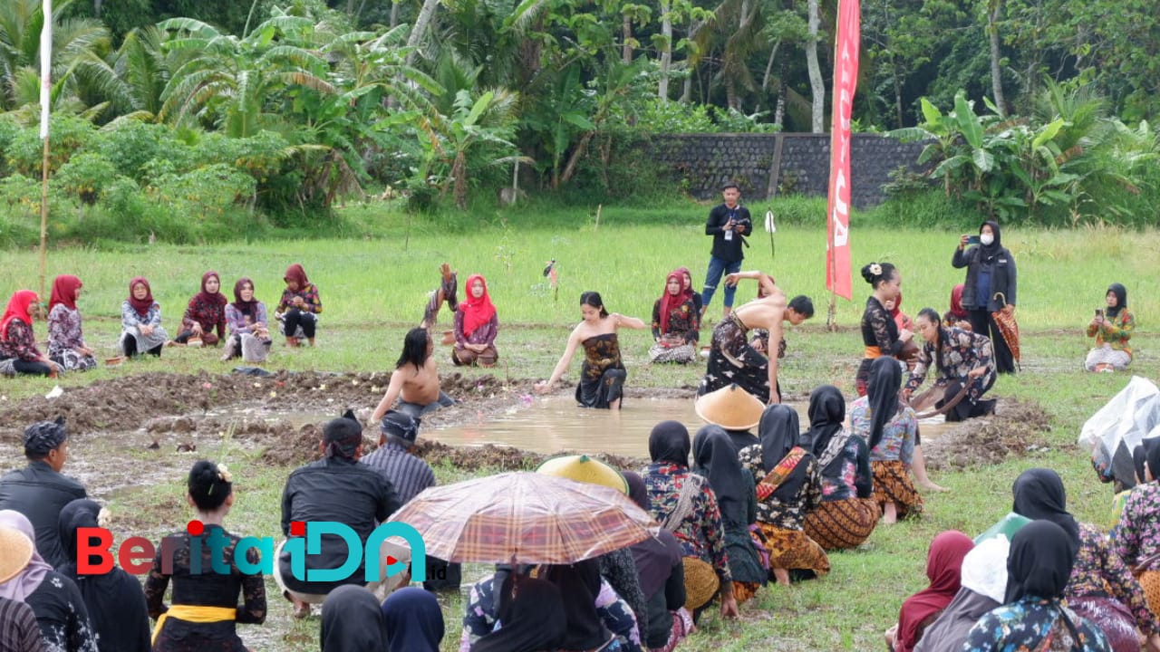Setibanya di area persawahan, peserta melakukan tradisi pengambilan tanah liat yang kemudian diangkut menggunakan tandu. Sepanjang perjalanan, mereka diiringi musik gamelan gerabah, yakni alat musik unik yang terbuat dari bahan tanah liat hasil karya perajin lokal.