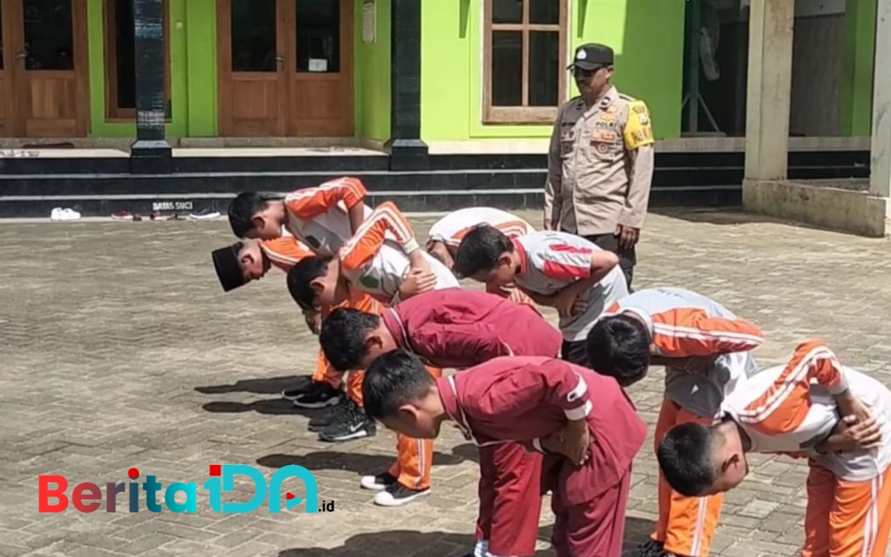 Penanaman kedisiplinan siswa oleh Bhabinkamtibmas Polsek Tulakan Polres Pacitan Aipda Latip Utomo. (Foto: BeritaIDN)