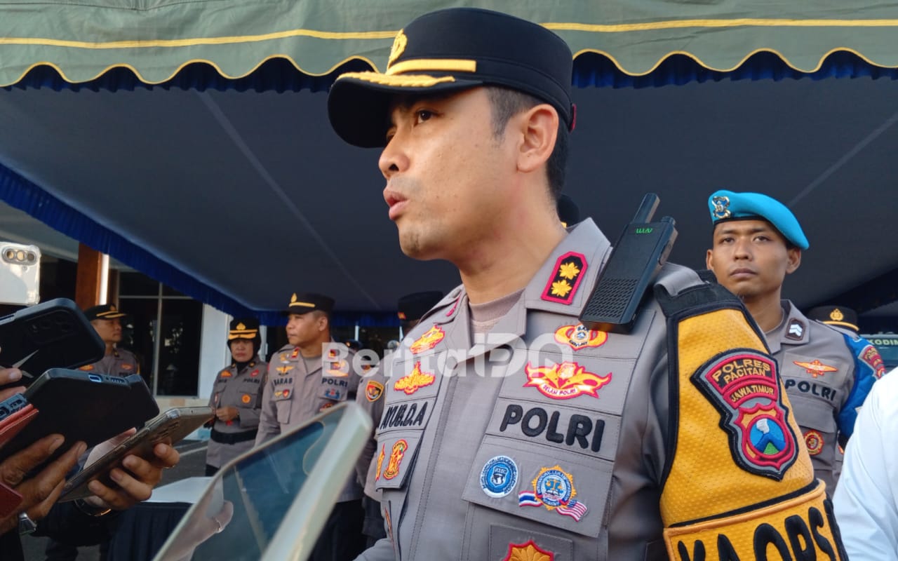 Kapolres Pacitan AKBP Ayub Diponegoro Azhar saat memberikan keterangan terkait distribusi LPG 3 kilogram di Pacitan, Senin (16/3/2026). (Foto: Dok. BeritaIDN)