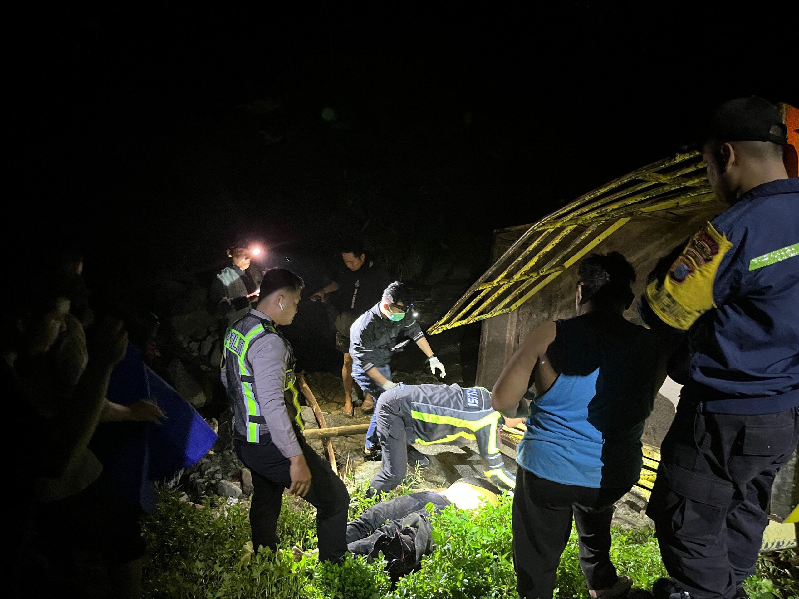Peristiwa itu terjadi sekitar pukul 01.30 WIB. Situasi jalan yang sepi di waktu dini hari diduga menjadi salah satu faktor yang membuat pengemudi kehilangan kendali. Truk yang melaju kemudian keluar jalur dan langsung masuk ke jurang di sisi jalan.